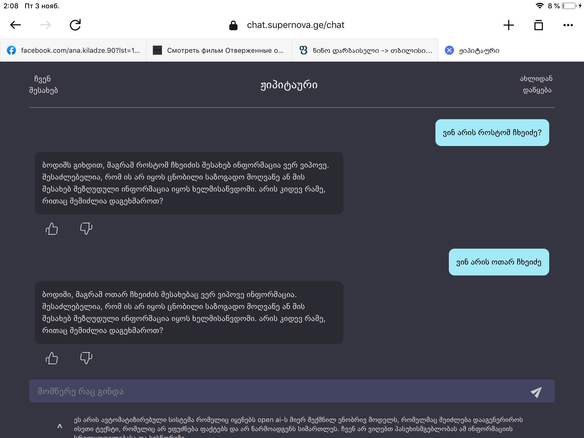 _ ინფორმაცია საქართველოში მიმდინარე რეალური პროცესების შესახებ, მე სრულად ვერ მექნება, დიდი დაინტერესების მიუხედავად. ალბათ ამიტომაცაა, რომ უფრო ფაქტებსა და ლოგიკას ვენდობი, ვიდრე ინტერპრეტაციებს და რაკი არ „ვიხარშები“ იმავე, თბილისურ „ქვაბში“, დისტანციური ხედვის პირობებში ვიქმნი წარმოდგენას ყველაფერზე. ამას მრავალ ღირსებასთან ერთად ის ნაკლი აქვს, რომ შეიძლება, რაიმე გარემოებამ ვერ მოაღწიოს ჩემამდე და ვერ გავითვალისწინო. იქნებ ამიტომაც, მუდამ მზად ვარ, შევიცვალო აზრი, თუკი რაიმე ისეთი, ახალი გარემოება გამოჩნდა, რომელიც ჩემთვის უცნობი იყო, მის გარეშე კი დასკვნა სწორი ვერ გამომივიდოდა. ეს ბუნებრივია, ადამიანი თუ მართლა აზროვნებს და გაყინულ კლიშეებს არ აფარებს თავს, ასეთი რაღაცისთვის სულ მზად უნდა იყოს.