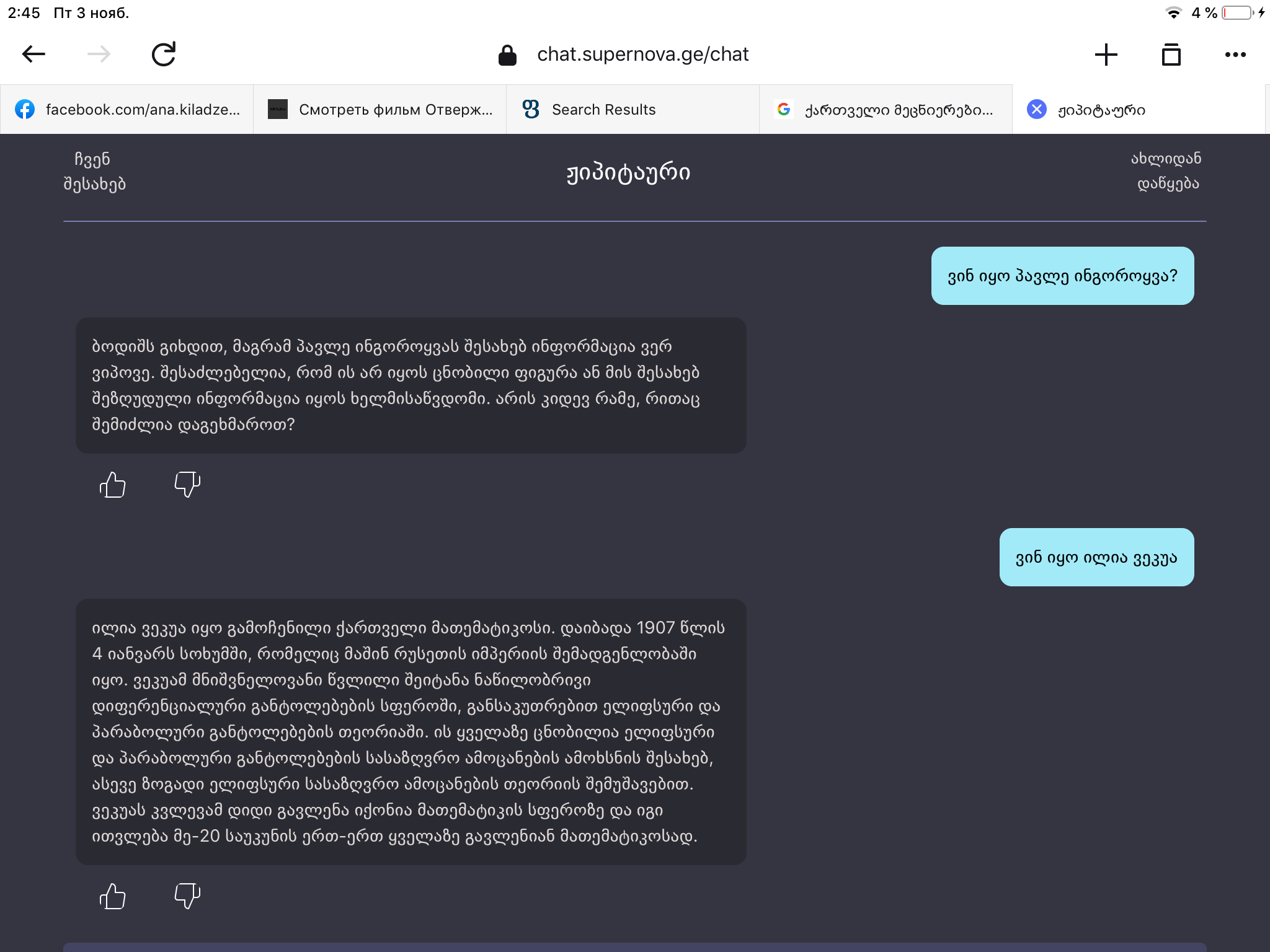 პროფესიონალებისგან შედგებოდეს . აქამდე კმაყოფილი და მადლიერი ვარ იმ ადამიანებისა, რომელნიც უსასყიდლოდ მიდგანან მხარში.