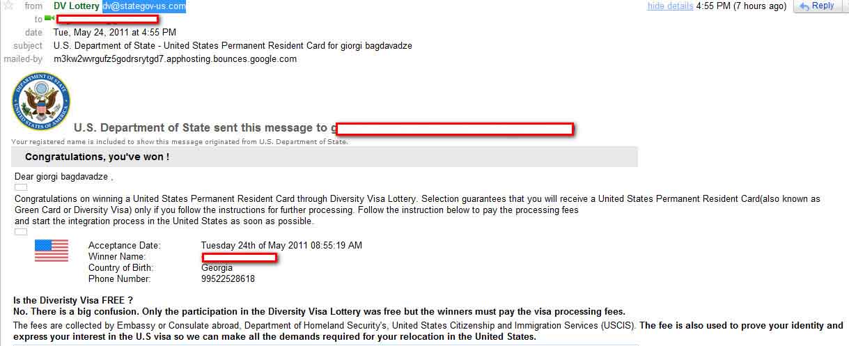 Congratulations on winning a United States Permanent Resident Card through Diversity Visa Lottery. Selection guarantees that you will receive a United States Permanent Resident Card(also known as Green Card or Diversity Visa) only if you follow the instructions for further processing. Follow the instruction below to pay the processing fees