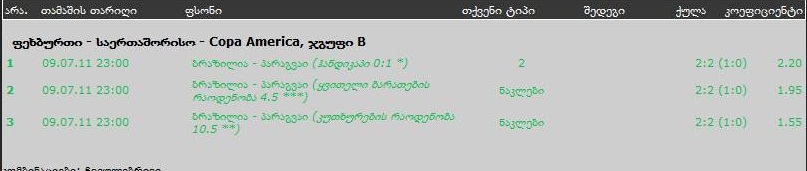 უშინ ბრაზილია პარაგვაიზე 6მდე ყვითელი იყო და მე მედო 4.5 ნაკლები და ეუროპამ მოგება ჩამითვალა