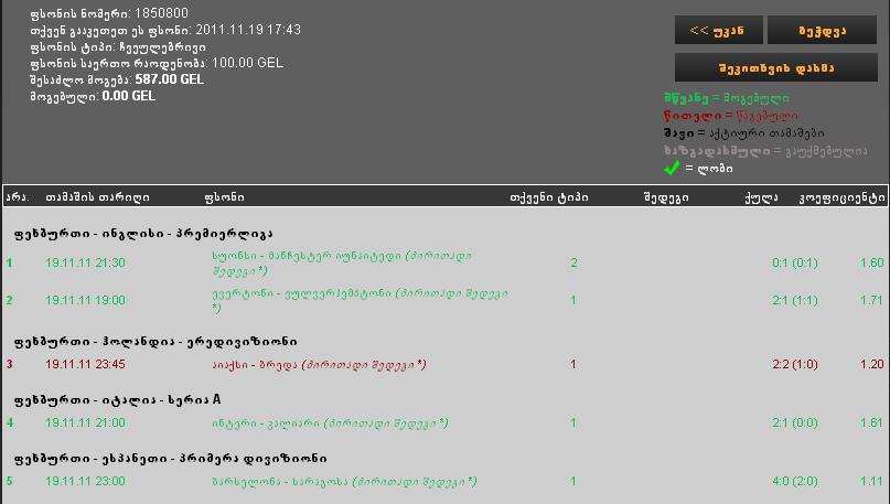 გრააფსხაპი-პსვ 2011-11-19 21:45 1:3 ძირითადი: 2 1.31 მოგებული
