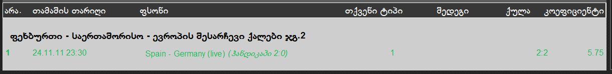 ყველაზე მეტად მაგის მჯერა. კიდე 1 გუნდს მივამატებ ამათ და 10-15 ლარს შევაგდებ.