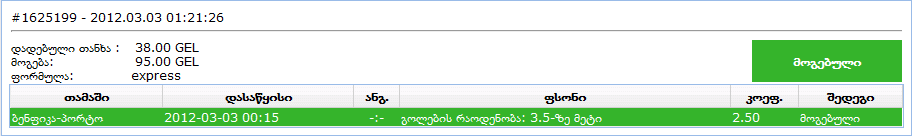 5 ლარში ამ თვეში მეორეჯერ ვიგებ 20ზე დიდ კუშს ... ცოტა ხნის წინ 25 იანი კუში დავსვი
