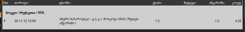 ევროპა-ბეთმა ეგ ხოკეი 1-2-ის მერე ამოაგდო ხომ იცი, გოთვერნები....... ცსკაა მოიგებს....