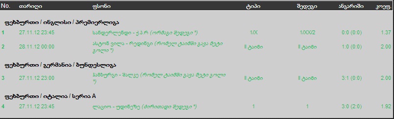 მე ფერეირას 1X დავიჭირე და გალას და ჰაპოელის 3.5 ოვერები....