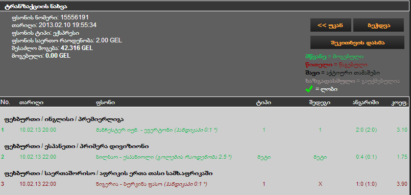 წააგებს,ეტყობა რო არ უნდა მოგება ან ვერ იგებს