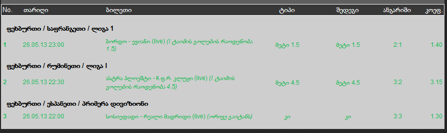 5) კორიტიბა - ატლეტიკო მინეირო კორიტიბა ფორმაშია ამაზე მეტყველებს ბოლო 5 თამაში რომეშიც ყველაში გამარჯვებული გამოვიდა 16:4 ბურთების შეფარდება მინეირეო არა სტაბილური გასვლით თამაშებში ურთიერშეხვედრებშიც აშკარად ჯაბნია კორიტიბა ასე რომ ეს თამაში არ უნდა გაექცეს 1X
