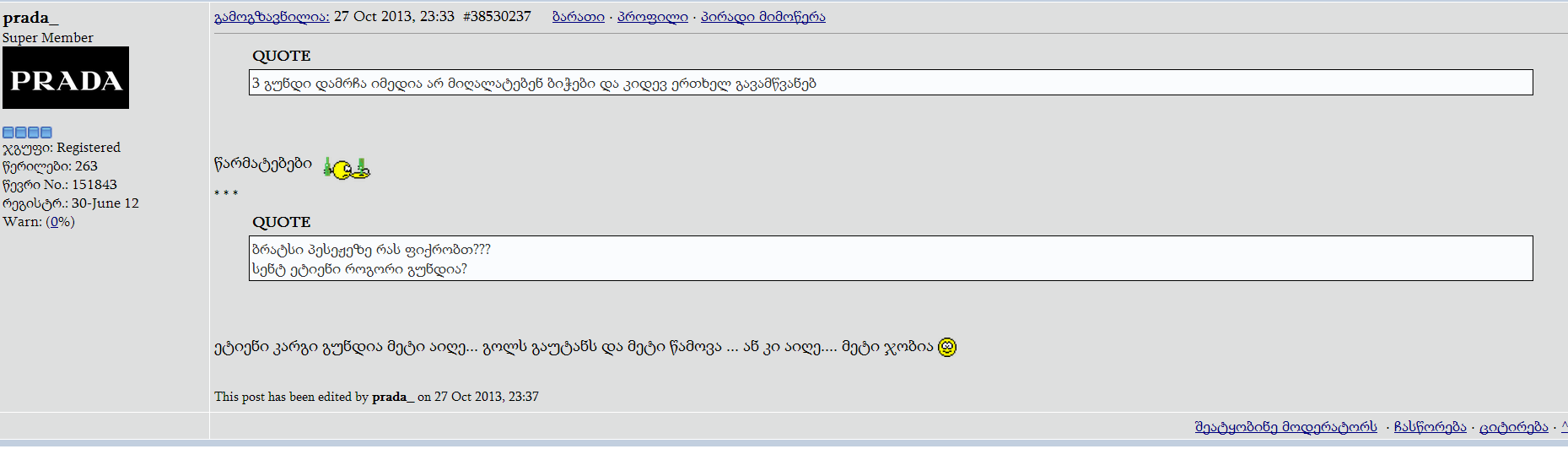 გუშინ აიაქსმა გამწირა, დღეს ჯენოა თუ 3 კუთხურს ვერ მოაწოდებდა რას ვიფიქრებდი და ეხლა თქვენცა რ ჩამიჯვათ რა.