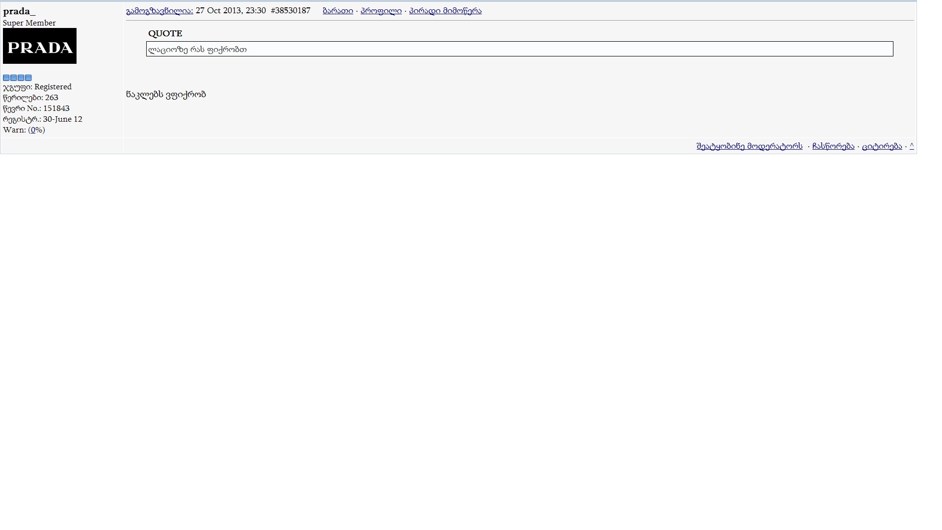 ამ ფორუმელის პოსტინგები გაქვთ იგნორირებული, ნახვისთვის დააწკაპუნეთ აქ