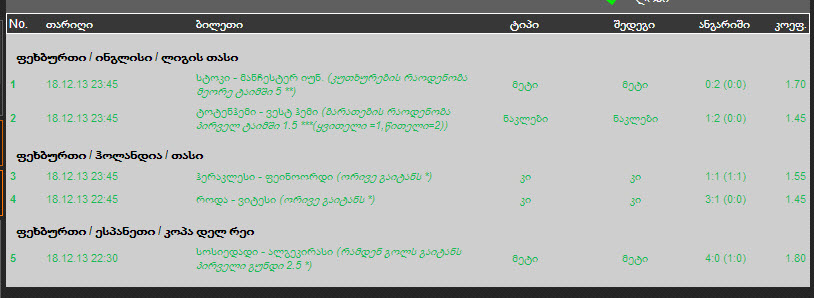 # 655-1091 გენკი - ოსტენდე 2013-12-18 00:03 0:0 ძირითადი : 1 1.52 გაუქმებულია
