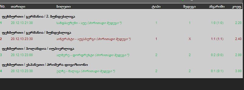 5 20.12.13 23:30 ბიტენფელდი - ტუსემ ესენი (ძირითადი შედეგი *) 1 ?-? 1.60