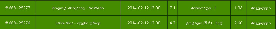 სტოკის მეტს აქვს 2,2 კუში და მაგრად მგონია რომ 2-2 მორჩება ეგ თამაში :დ