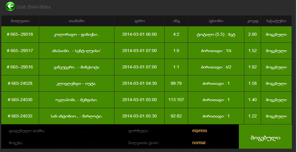 ტოტალიზატორი, GREEN!