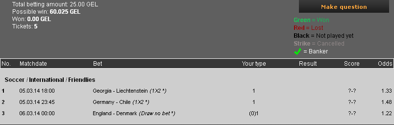 ეგრე იძახდა ერთიც უეჭველი 5 კუში ვიცი 5 ლარად მოგცემთო და რომ ვუთხარი ჯერ საცდელად დადე აბა თუ დასვამ მეთქი და ორი თამაში დაწერა-ორივე გატყდა