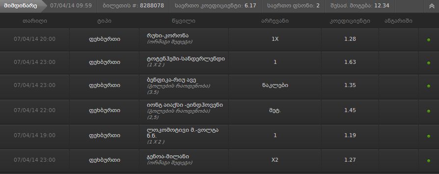 ფსონი და შესაძლო მოგება დაგემალა ან თითო ნული მიგეწერა