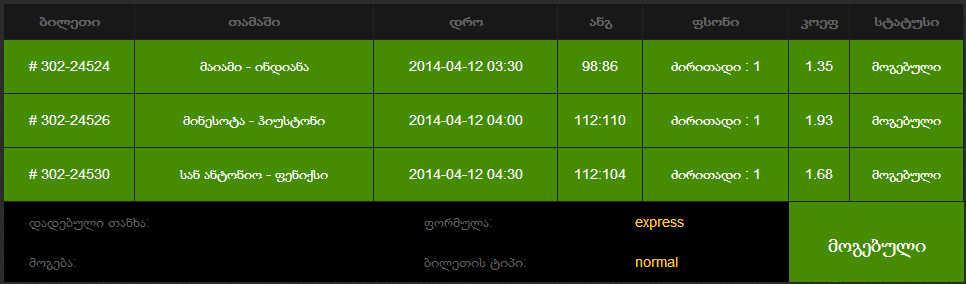 ტოტალიზატორი, GREEN-ზე გევლოთ ;)
