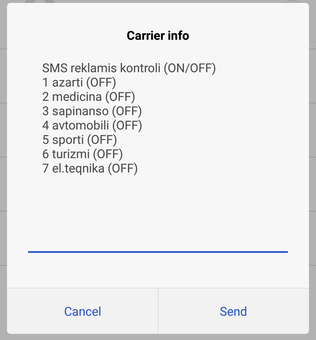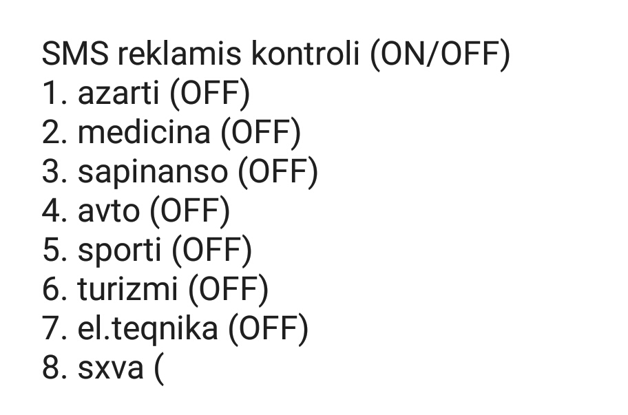 SMS რეკლამის გამორთვა.
