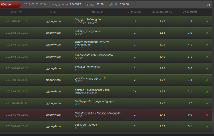 ლიონმა და მონაკომ წყნარად მიიყვანეს უდღეური თამაში უგოლო ფრემდე..ენაცვალა მაგათ მალაიზიის მთელი სინდიკატები.. მე კი ვთქვი წინა თემაში,2-იანზე რა აზრის ხართ-მეთქი,ძაან დიდი რისკია-თქო და კიო, მითხრეს, X/2-საც ერიდეთო..
