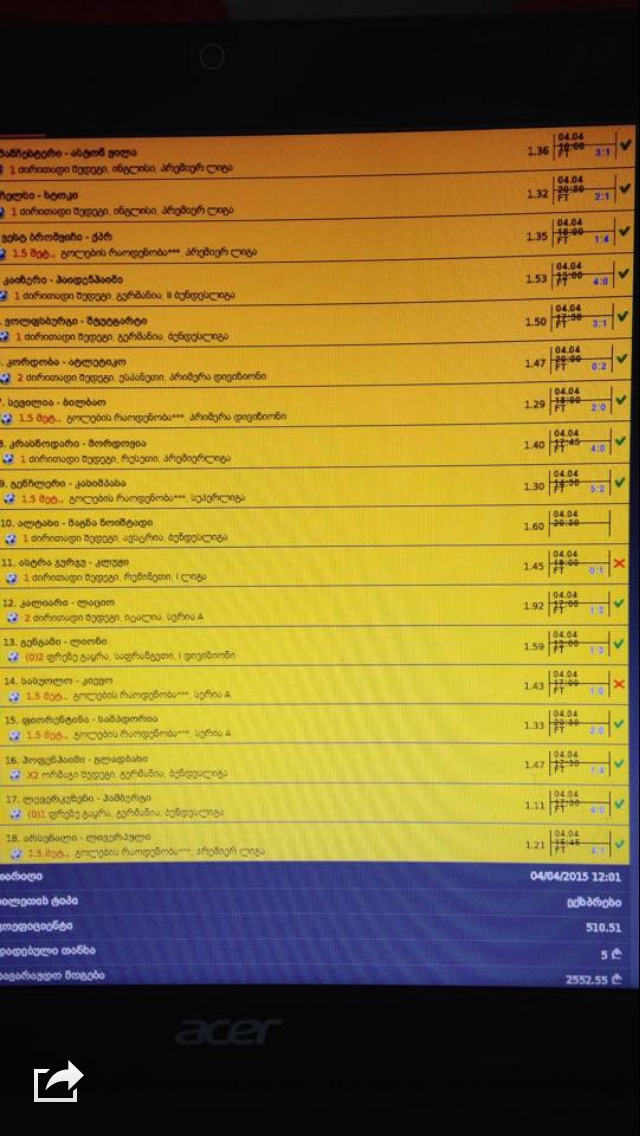 ყველა რო დამჯდარიყო, 1000 ლარს ვიგებდი, ერთს რო გაემაზა 644 ლარს, მარა დავრჩი ასე ###ურად...