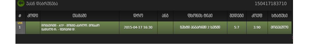 ეხა რო დააბრეიკოს არი შანსი 4-6 მერე თავისი მოწოდებით იწყება და 3-6 ია რა .. მეც ვერ მოვიგე ბლინ