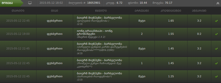 ჩემი ღამის ბილეთი , მევასება ბეისბოლში 5.5ზე მეტის 1.4 კუში