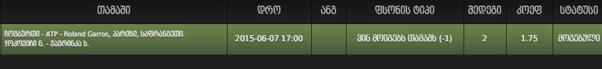სამწუხარო მხოლოდ ისაა რომ სანამ გადავწყვიტე მესამე სეტში დააბრეიქა ვავრინკამ და ნაკლებ კუშად ავიღე
