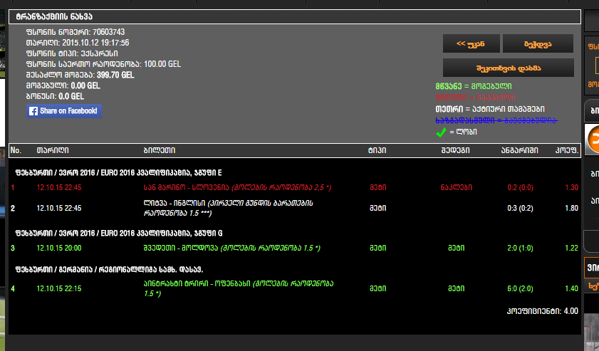ტოტალიზატორი, GREEN