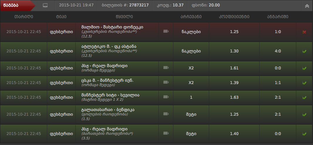 მაგრად მომეწონა თამაში დაუნდა ვუყურო ბოლომდე.. ეხლა ეგ მოგებული ვთხარე მეორე ტაიმის 1.5> მეტ გოლზე.