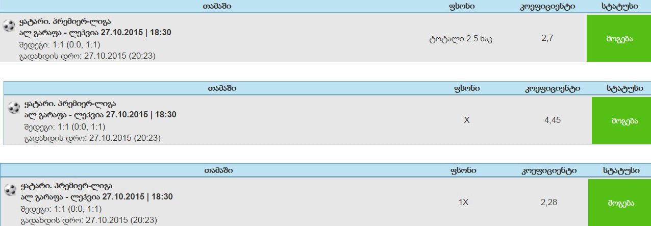 ტოტალიზატორი, all green