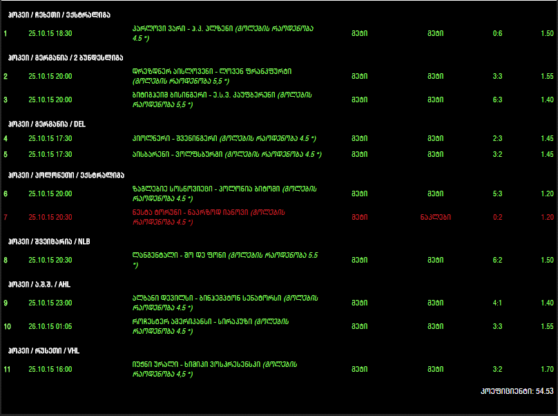 ტოტალიზატორი, all green