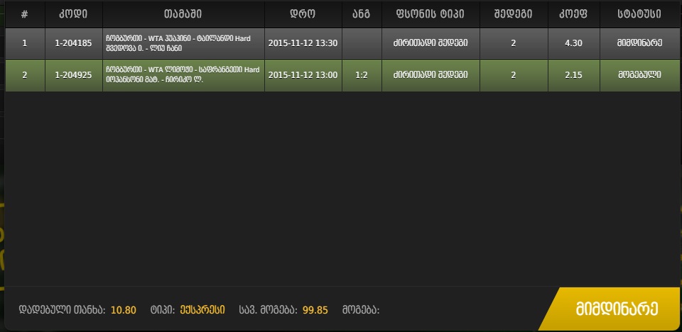 ფსონის საერთო რაოდენობა: 11.00 GEL