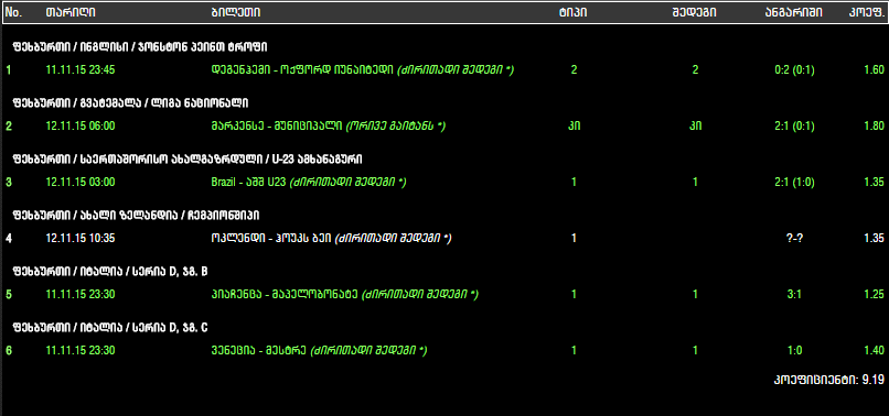 ტოტალიზატორი, GREEN