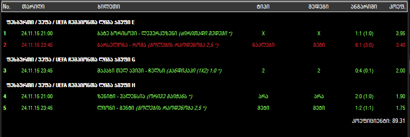 ტოტალიზატორი, ALL GREEN