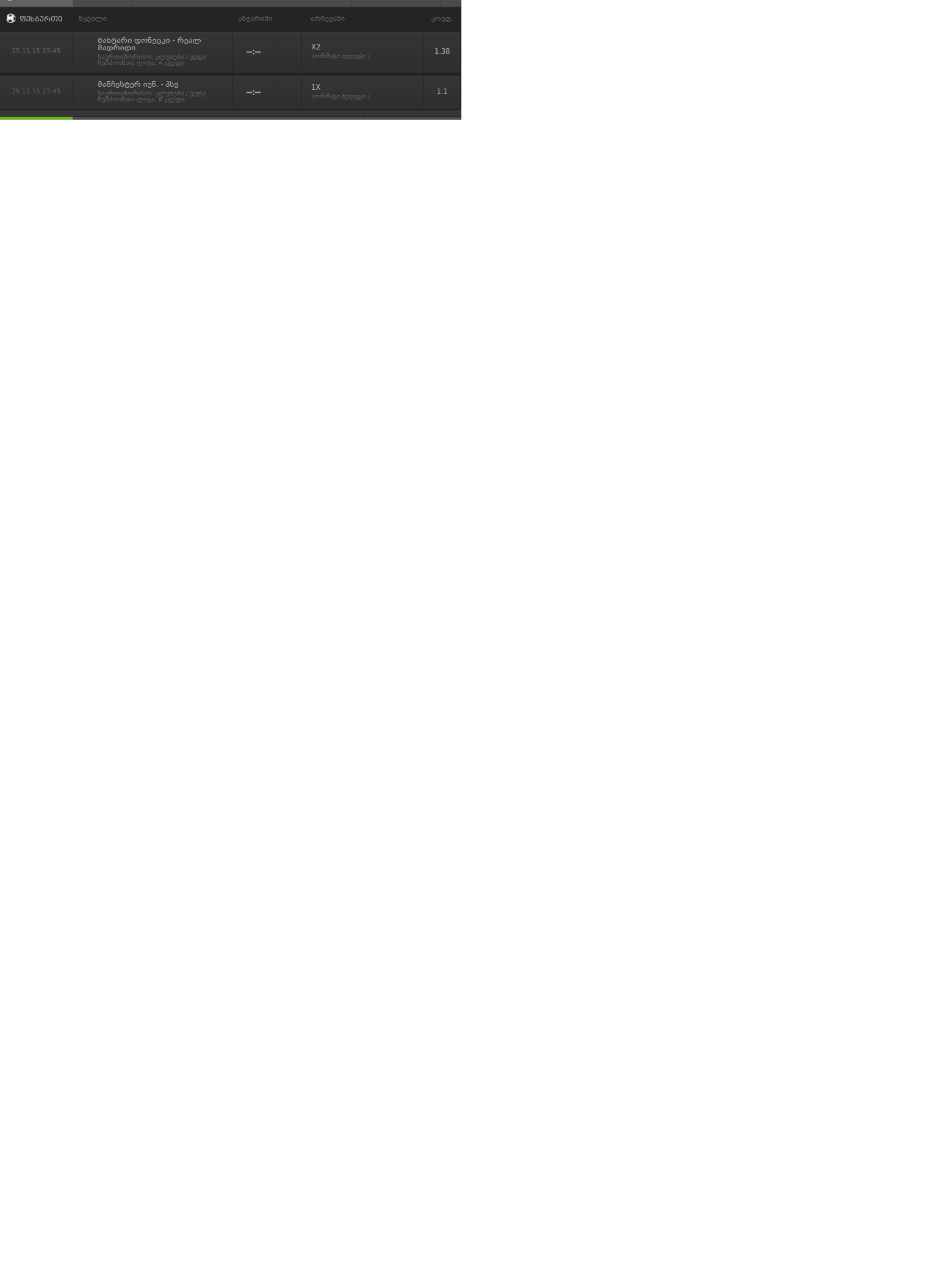 გილოცავთ ყველას დღეს ორი დედის ტყვნა ფსონი მქონდა რეალის ორი და ბენფიკას 2:2 , ყველაფერი რავწერე რაშიც მოვიგე