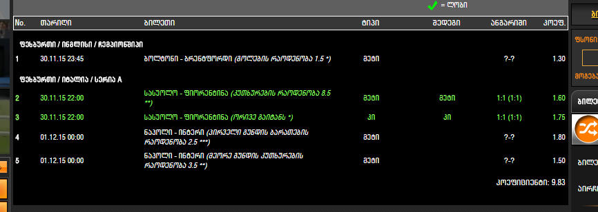 ტოტალიზატორი, GREEN