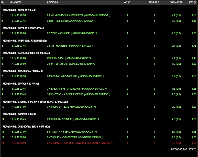 ტოტალიზატორი, GREEN