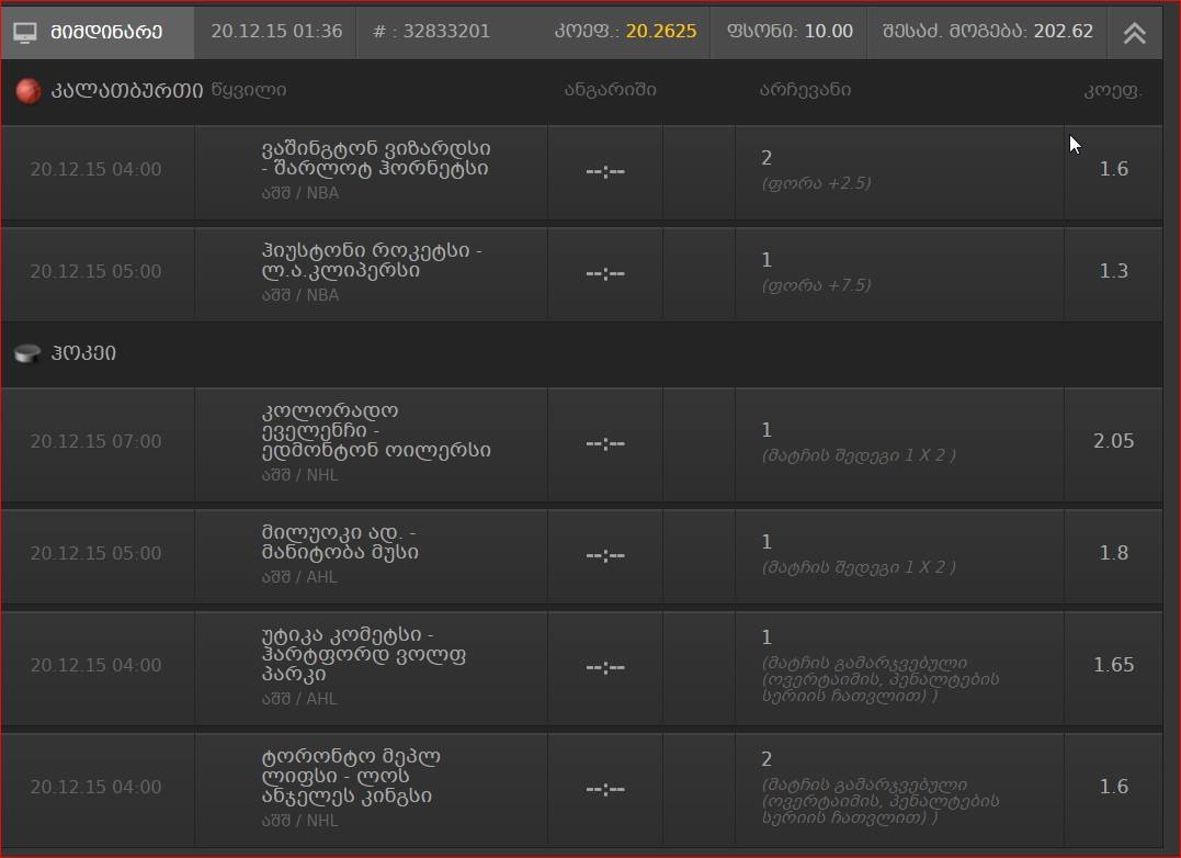 ესე დიდ თანხაში რულეტკაა ჰოკეის შედეგის გამოცნობა