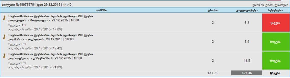 დღეს ვერცერთ ლაივზე ვერ გავრისკე დადება, რა ხდება ჩემს თავს :-D