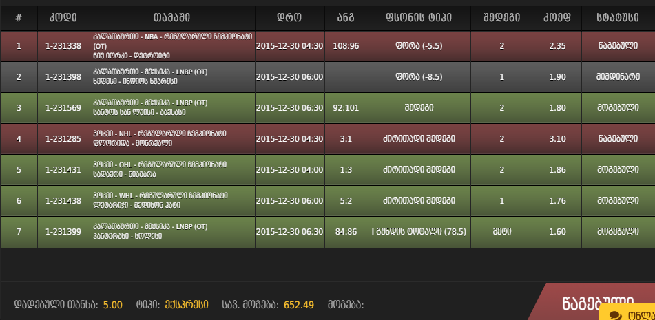 ამერიკის კალათბურთს ვერ ავუღე ალღო, ძალიან ხშირად სრულიად საპირისპირო შედეგები ჯდება და ვცდილობ ნაკლებად დავდო