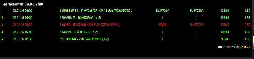 3 02.01.16 19:00 ვესტ ბრომვიჩი - სტოკი (გოლები (0:0 ლუწი)*) ლუწი ?-? 1.80