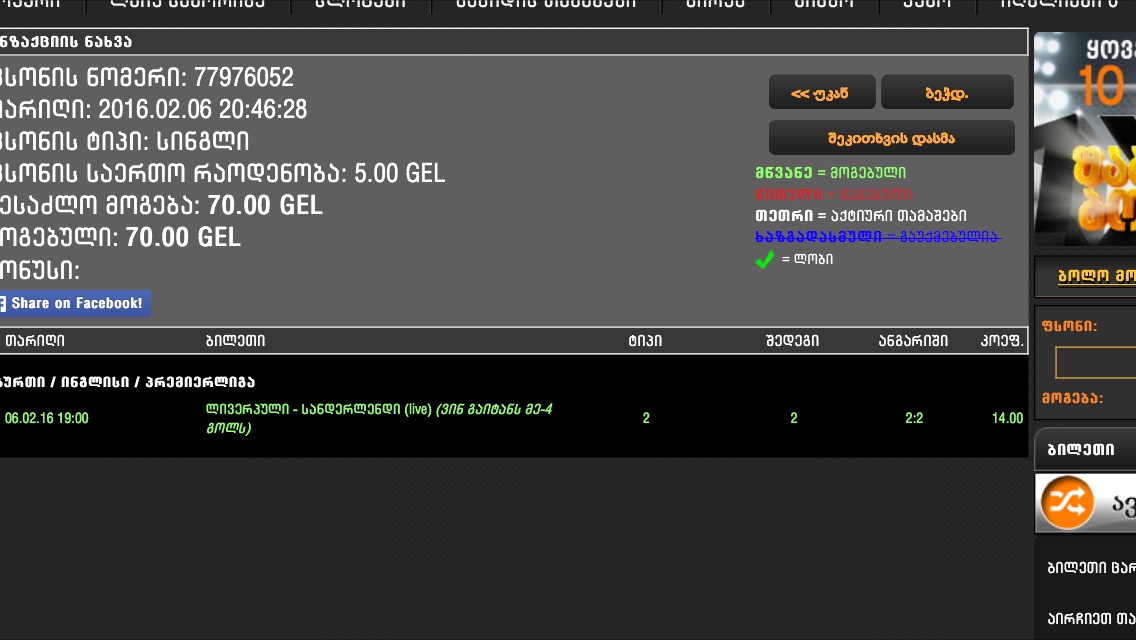 ეჰჰ ... ლივერი მეწერა და ტოტე 80 ლარშI და არ ვენდე მაგ ###ებს დ. ბოლო 5 ლარით ქე ამოვიღE დადეფული.. კიდე კაი.. პიტალო გუნდია იმენა 10 ცუტშI მოჯვეს :/