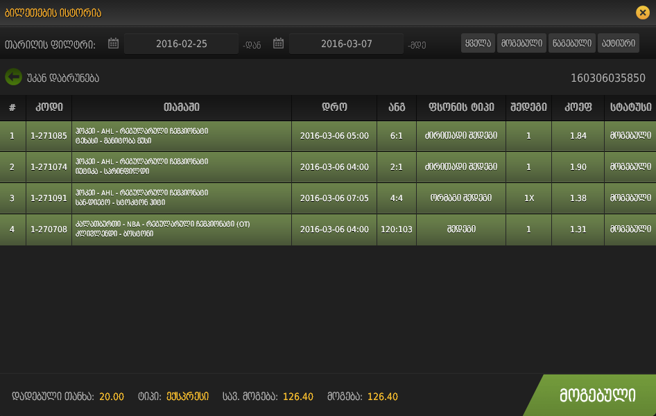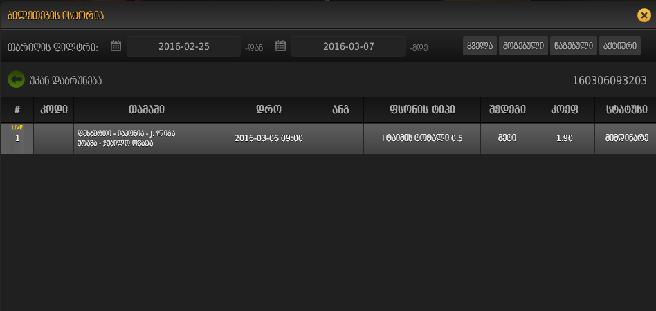2-ზე ამოვარდება ფსონი.