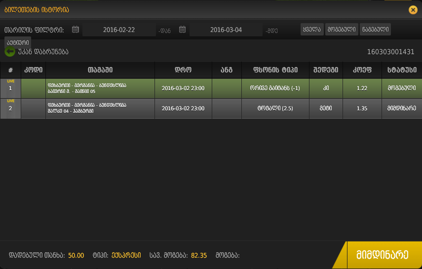 2 ბილეთი დავწერე და 2 ვე თითო თითო შევტენე ბილეთებში.