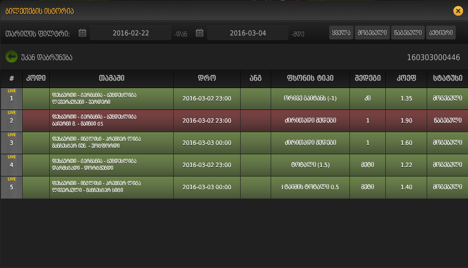 2016-03-03 04:30 შედეგი 1 1.46 მიმდინარე