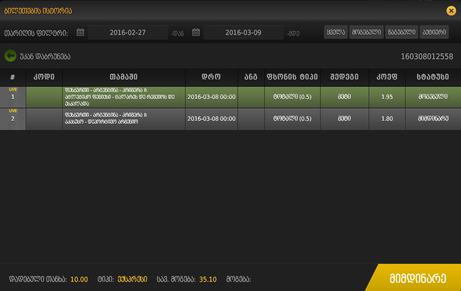 ტოტალიზატორი, GREEN