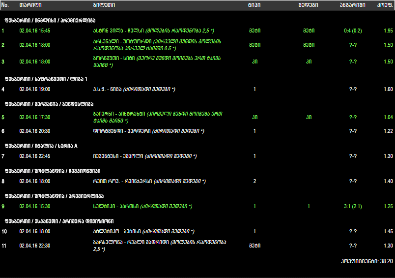 უფფფ... გაიხარეთ დიდი მადლობა.. მემგონი არსენალი და ატლეტიკო სანერვიულო აღარ არის