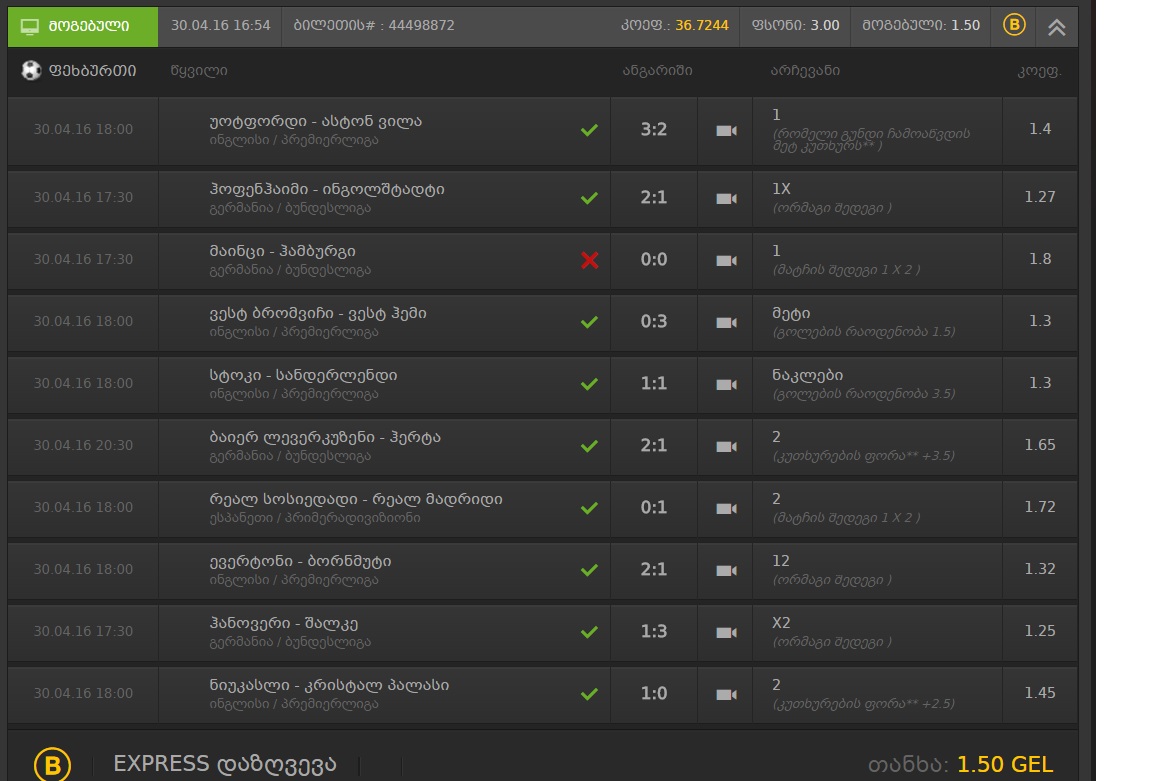 (მატჩის შედეგი 1 X 2 )