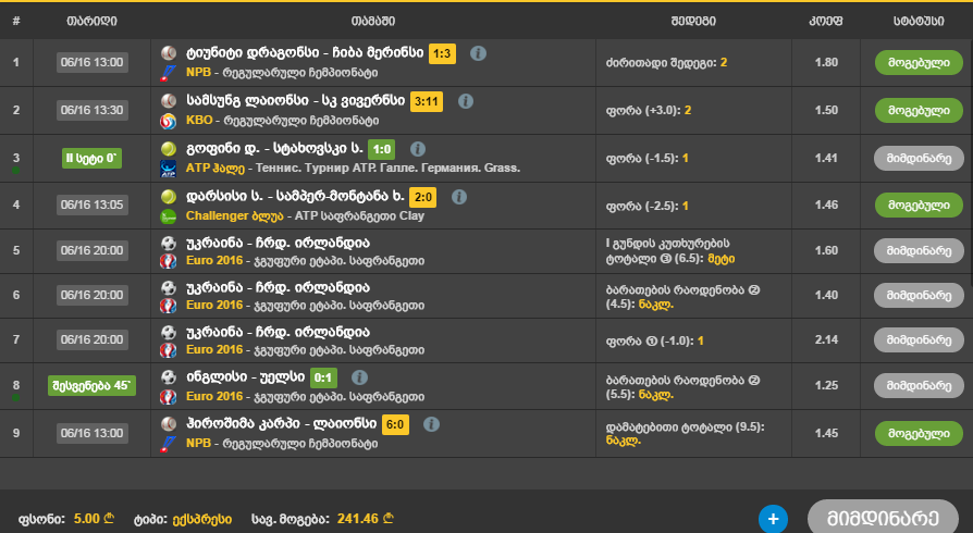 ტოტალიზატორი, EURO 2016