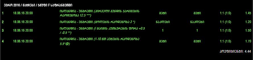 ტოტალიზატორი, EURO 2016