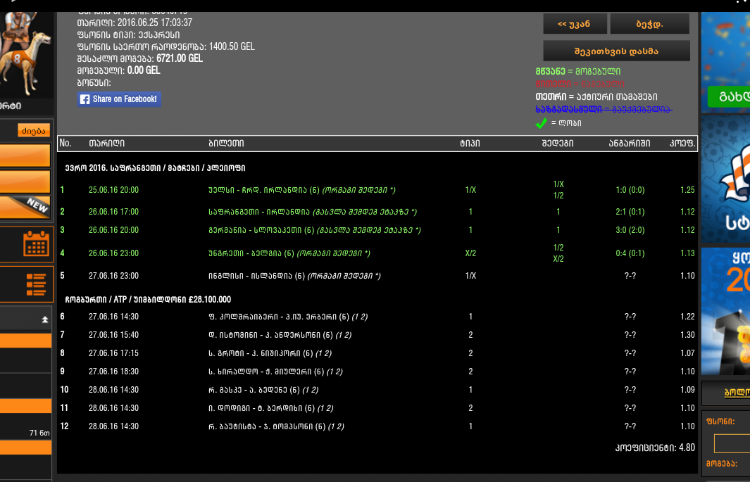 ტოტალიზატორი, EURO 2016